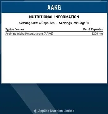Ingredients: Arginine Alpha-Ketoglutarate (AAKG), HPMC (Vegetarian Capsule Shell).
