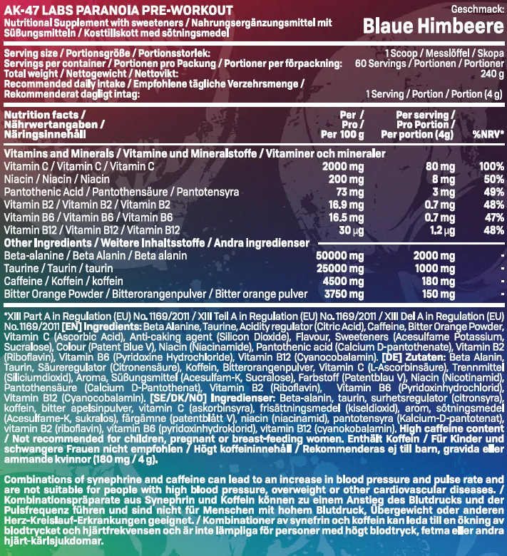 Hver scoop forsyner dig med 2000 mg Beta-alanin, som vil klargøre dit nervesystem til tung træning. Vil du kunne løfte tungere, og blive mere eksplosiv under træning? Så giv A₭-47 et skud!