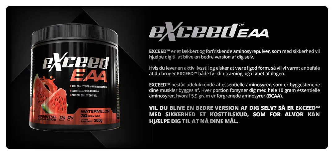 Vil du blive en bedre version af dig selv? Så kan Fitnessnord EXCEED EAA være produktet for dig! Produktet sikrer dig alle de essentielle aminosyrer, som vores kroppe ikke selv kan danne.