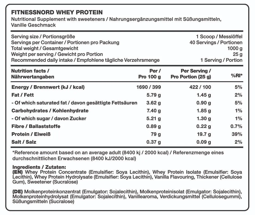 100% Whey fra Fitnessnord er et proteinpulver af højeste kvalitet. Produktet består af 100% rent valleprotein isolat og koncentrat, som vil øge din restitution og hjælpe dig med at opbygge fedtfri muskelmasse. I og med 100% Whey indeholder proteiner fra valleprotein isolat, får du en bedre aminosyreprofil, sammenlignet med almindeligt valleprotein koncentrat. Med andre ord får du her en rigtig god kvalitet, til en usandsynlig lav pris.