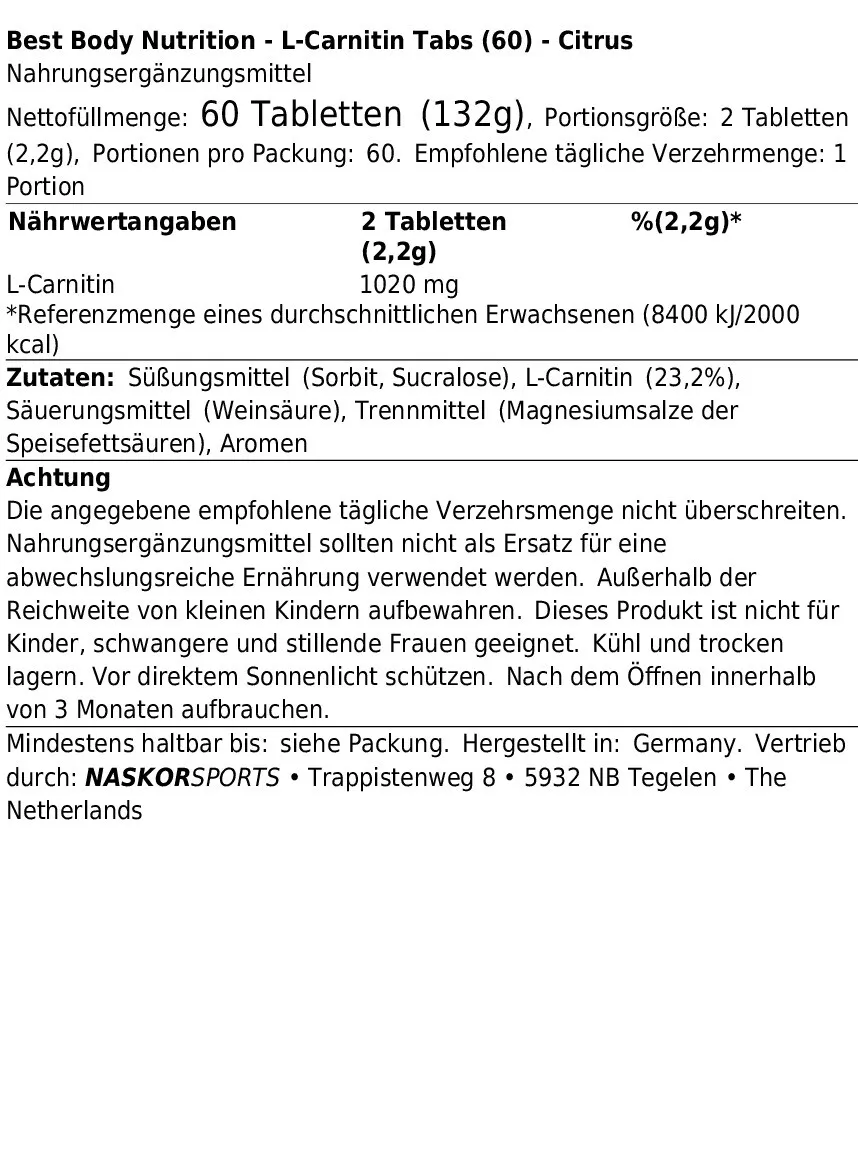 BEST BODY NUTRITION L-CARNITIN TABS (60)