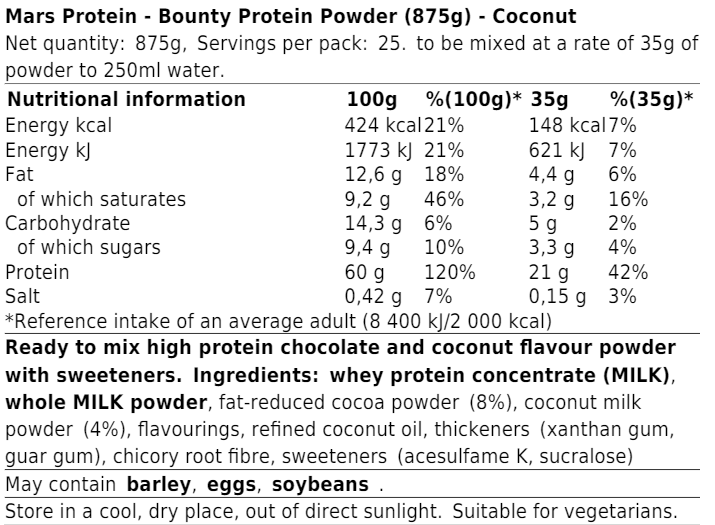 Er du på udkig efter et yderst velsmagende proteinpulver, som samtidig har en fornuftig ernæringsmæssig profil? Så er det nye Bounty Hi-Protein noget for dig.