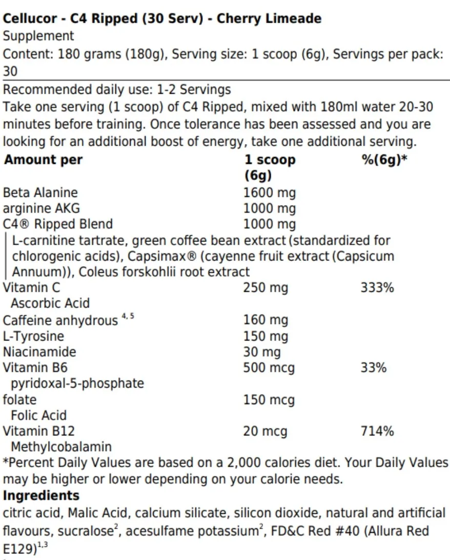 C4 Ripped er et pre-workout som har kombineret den eksplosive energi fra C4 med fedtforbrændende ingredienser. Indholdet i produktet vil hjælpe dig med at træne hårdere og samtidig øge din fedtforbrænding.