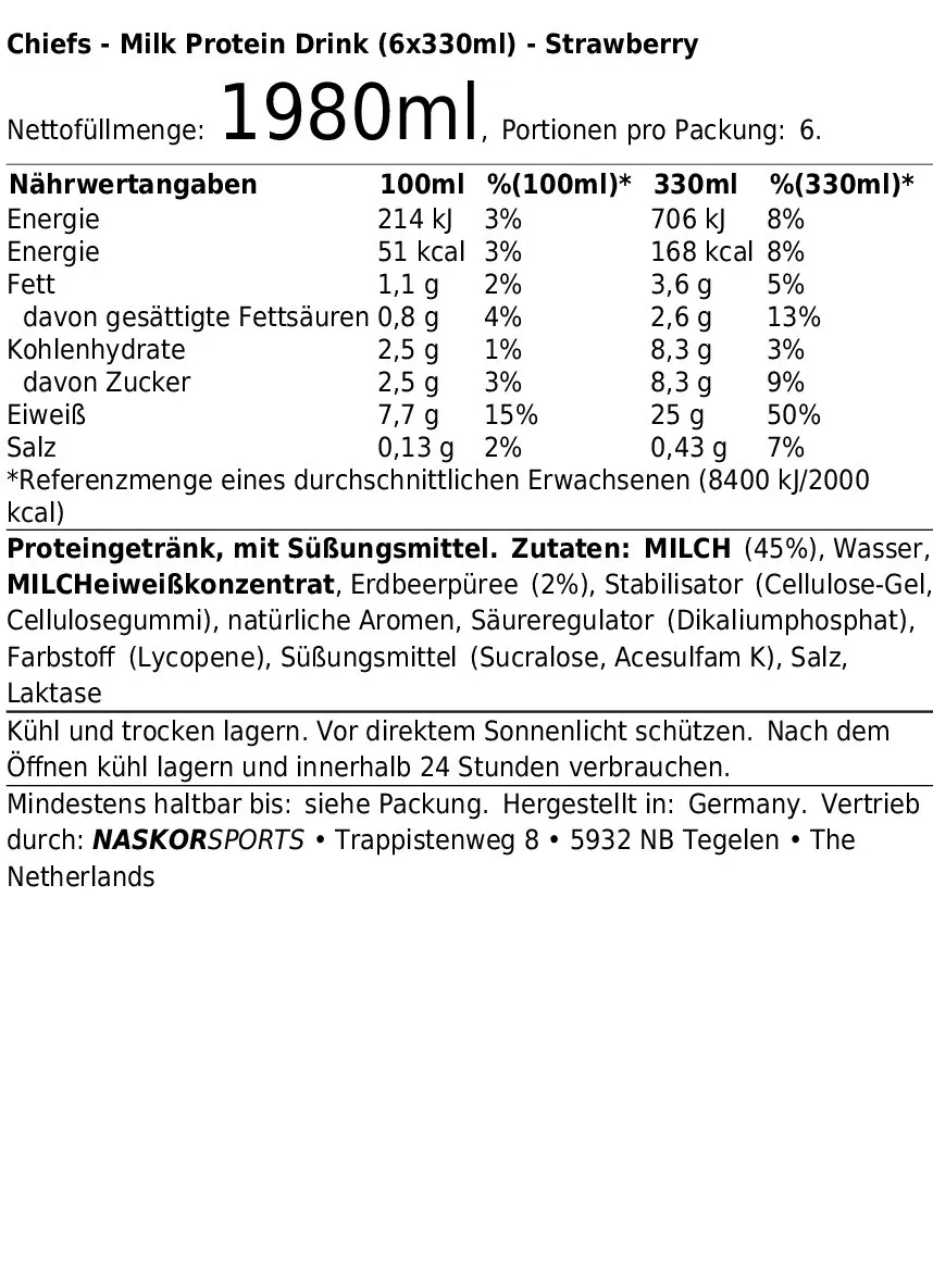 CHIEFS MILK PROTEIN DRINK (6X330ML)