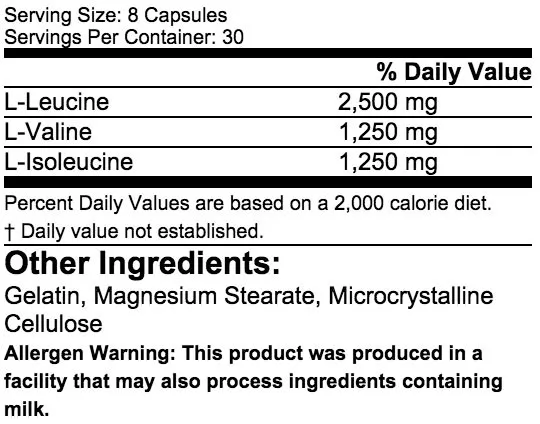 BCAA 5000 kapsuler bestående af BCAA af højeste kvalitet. Kapsulerne har den videnskabelige beviste ratio 2:1:1 af leucin, isoleucin og valin. BCAA kapsulerne bliver absorberet direkte af musklerne, og har en vigtig rolle med at fodre dine muskler med aminosyrer under træning og hjælper dig med en hurtigere restituering lige efter træning.