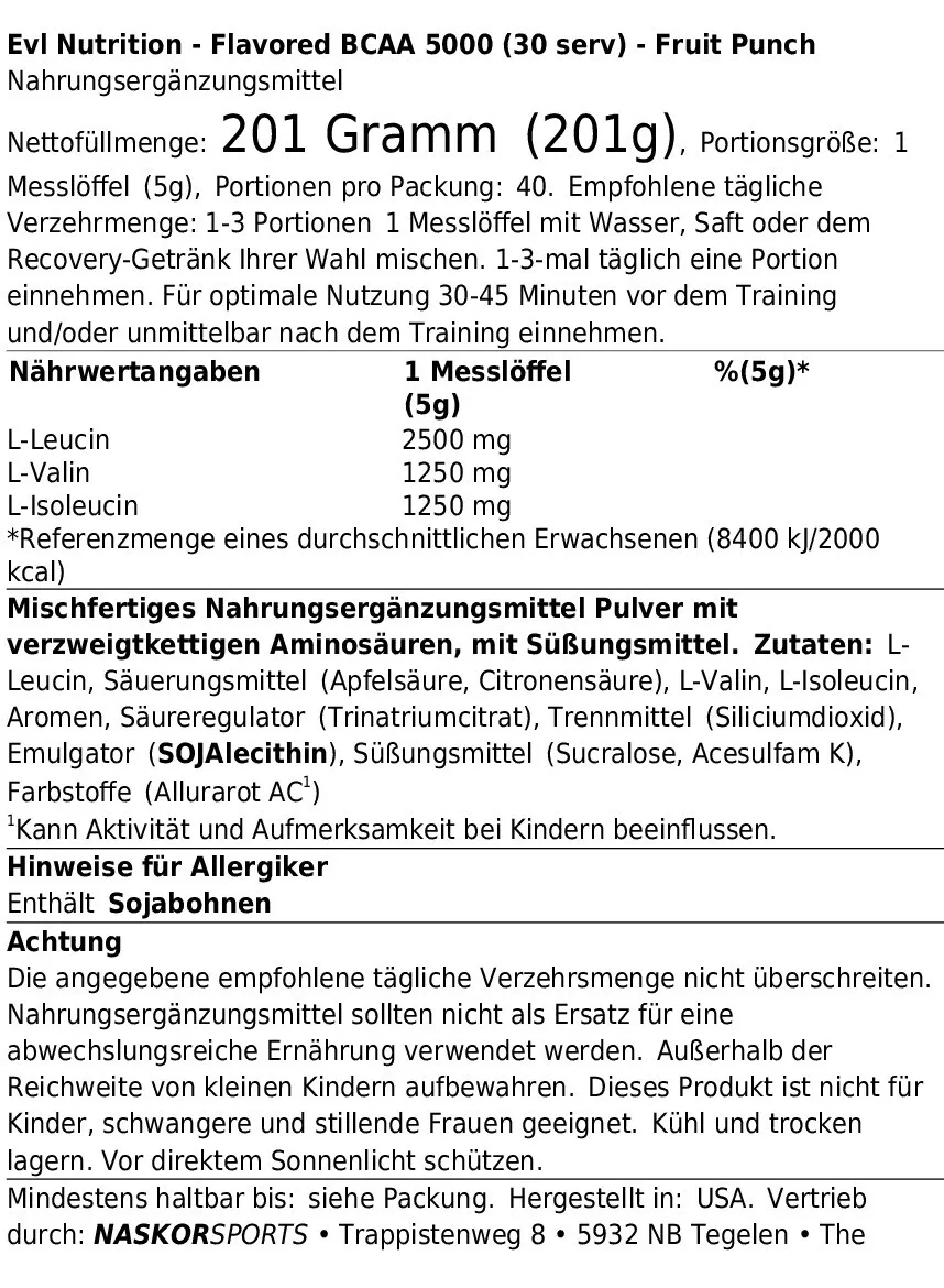 EVL NUTRITION FLAVORED BCAA 5000 (30 SERV)