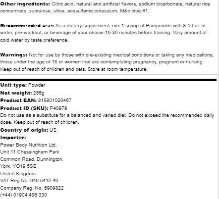 Pump Mode et nyt og effektivt produkt, som vil sikre dig intense muskelpumps under din træning. Produktet er frit for stimulanser, og vil ikke give dig den velkendte crasheffekt. Produktet indeholder ingrediensen betain nitrat, som hjælper dig til at kunne producere mere nitrogenoxid, og dermed få et bedre pump. Derudover indeholder produktet C-vitamin og D-vitamin, som bidrager til din præstationsevne.