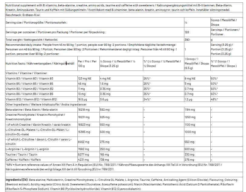 RAGNAROK™ er tilsat kreatin, arginin, beta-alanin og andre højkvalitets ingredienser