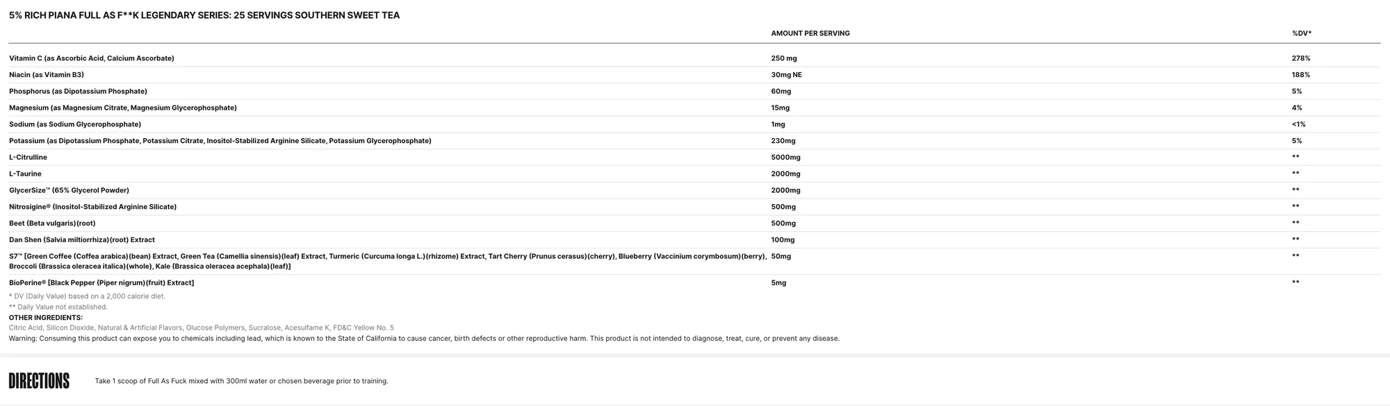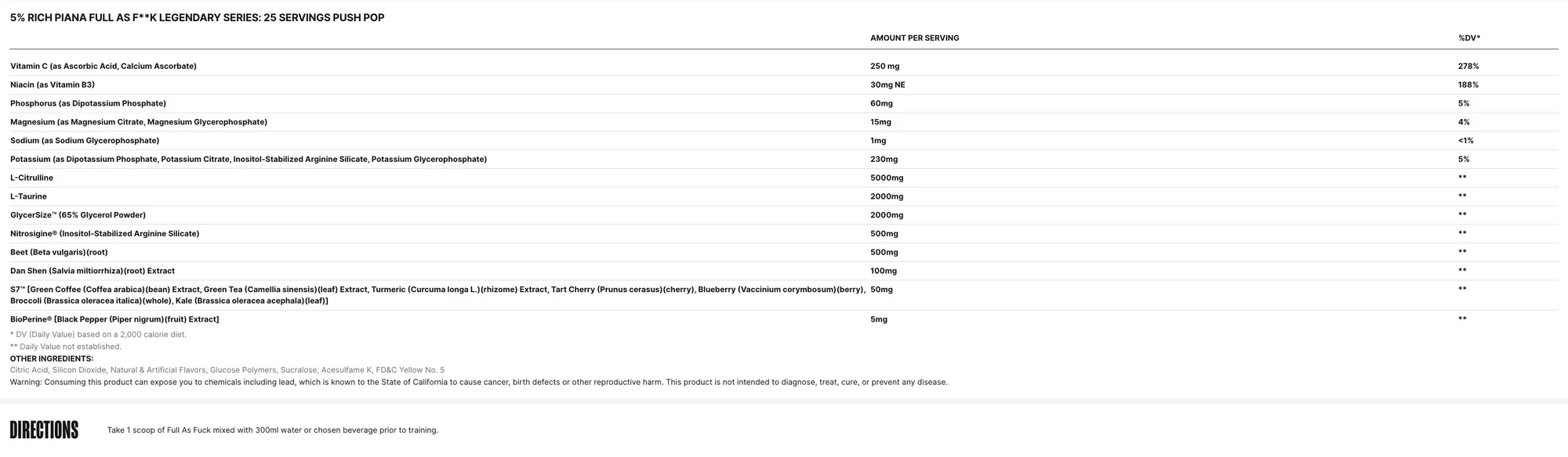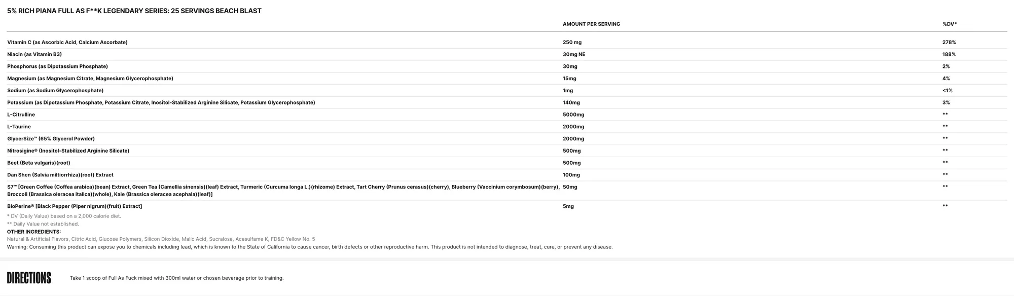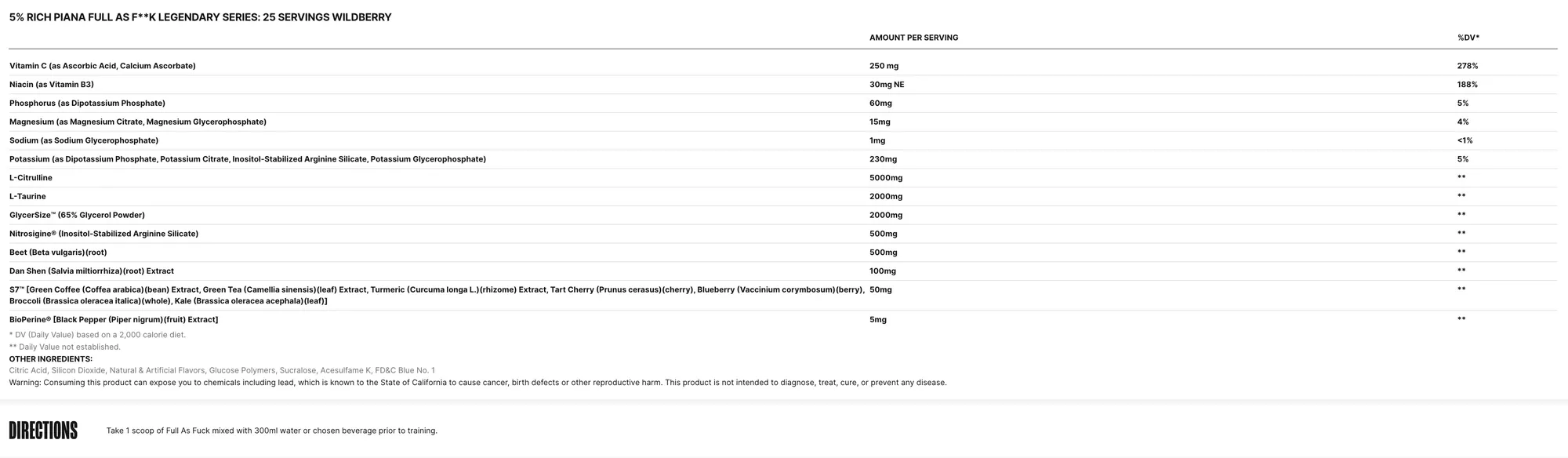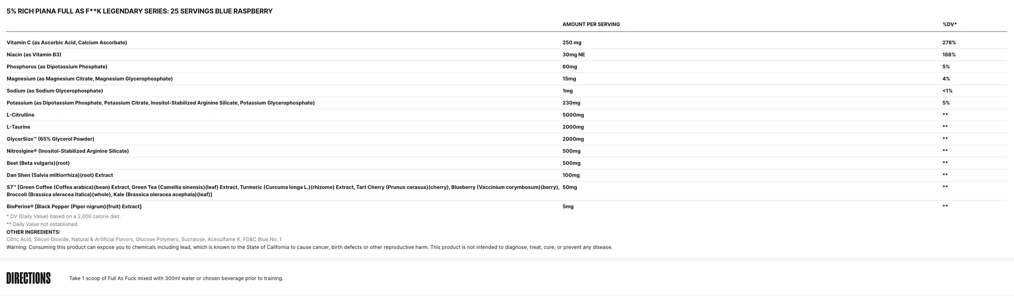 Desuden er ingredienserne tilført i yderst generøse mængder. FULL AS F*CK vil altså udvide din blodvolumen i dine muskler til deres maksimale kapacitet, og lidt mere end det.
