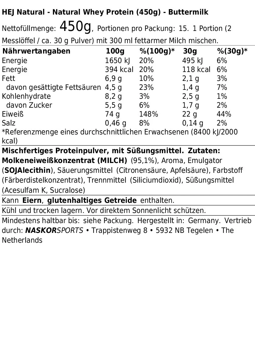 HEJ NATURAL NATURAL WHEY PROTEIN (450G)