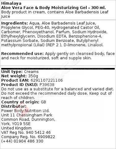 HIMALAYA ALOE VERA FACE & BODY MOISTURIZING GEL - 300 ML.