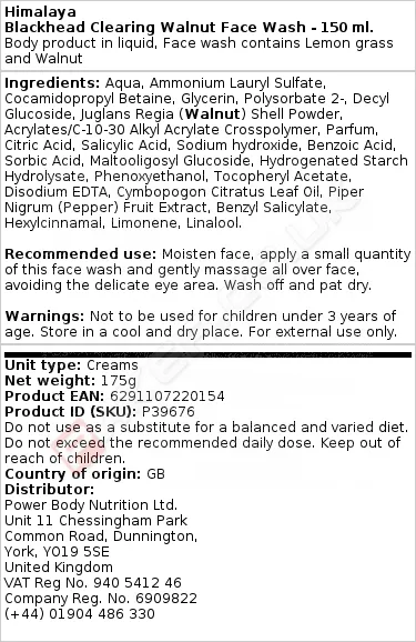 HIMALAYA BLACKHEAD CLEARING WALNUT FACE WASH - 150 ML.