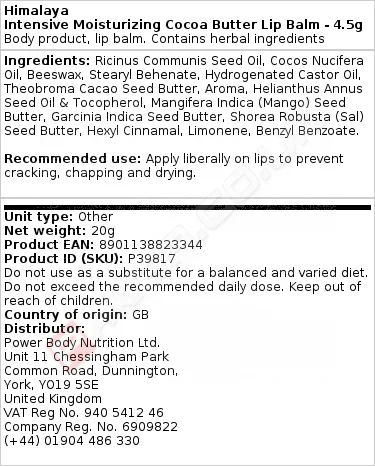 HIMALAYA INTENSIVE MOISTURIZING COCOA BUTTER LIP BALM - 4.5 GRAMS