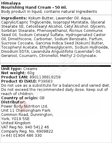 HIMALAYA NOURISHING HAND CREAM - 50 ML.