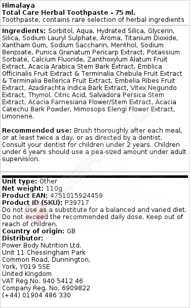 HIMALAYA TOTAL CARE HERBAL TOOTHPASTE - 75 ML.