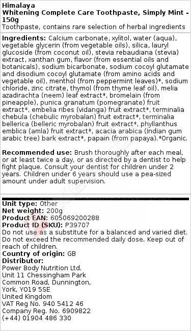 HIMALAYA WHITENING COMPLETE CARE TOOTHPASTE, SIMPLY MINT - 150 GRAMS