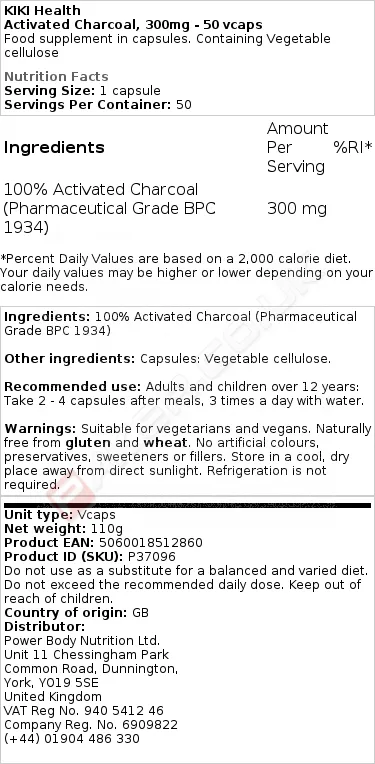 KIKI HEALTH ACTIVATED CHARCOAL, 300MG - 50 VCAPS