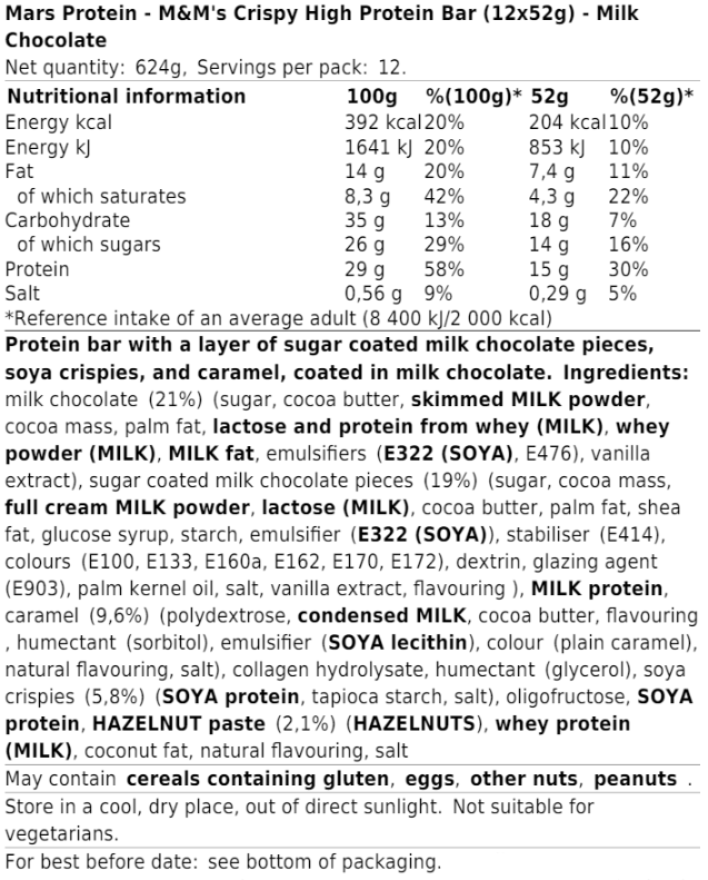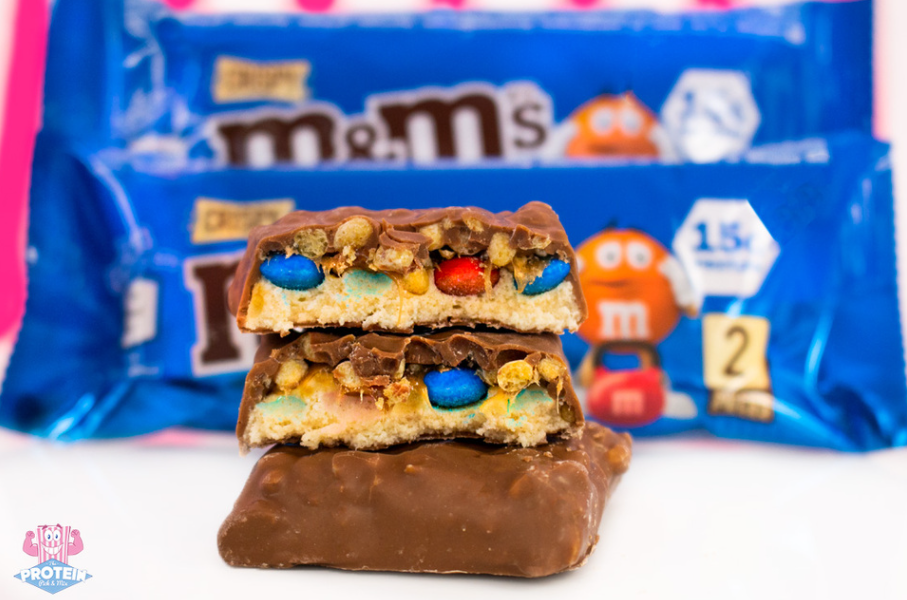 M&M´s Crispy High Protein Bar med den umiskendelige M&M's smag...med tilføjet sprød knas!