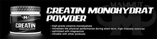 Mammut Kreatin Monohydrat består af 96% rent kreatin monohydrat. De sidste 4 procent er fyldstoffer, som sørger for kreatinen ikke klumper.