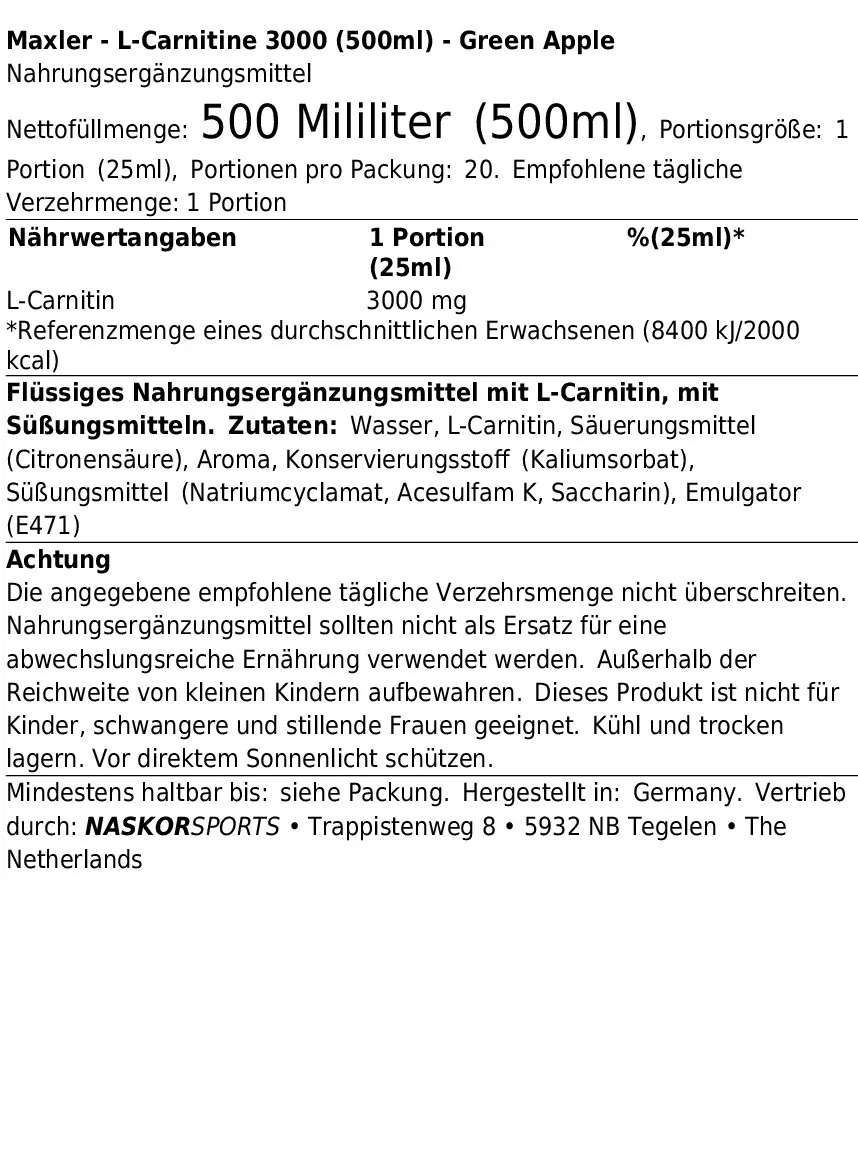 MAXLER L-CARNITINE 3000 (500ML)