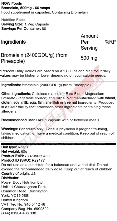 NOW FOODS BROMELAIN, 500MG - 60 VCAPS