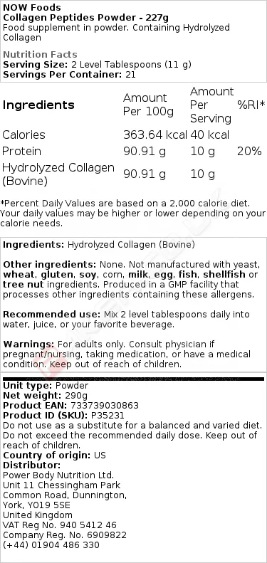 NOW FOODS COLLAGEN PEPTIDES POWDER - 227 GRAMS
