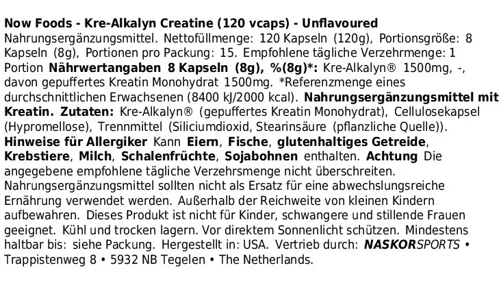 NOW FOODS KRE-ALKALYN CREATINE (120 VCAPS) UNFLAVOURED