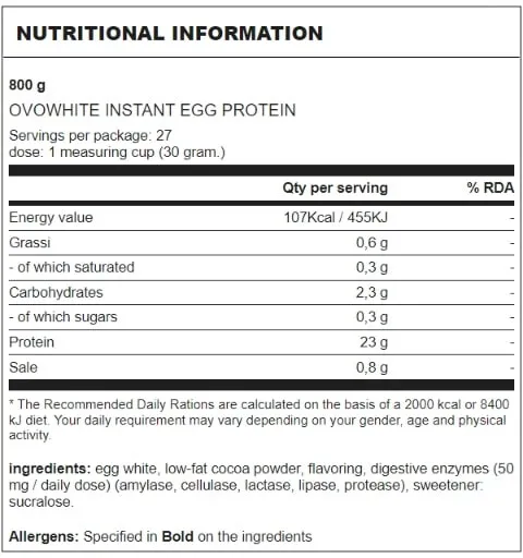 OVOWHITE INSTANT 100% EGG PROTEIN SHAKE 800 g-Chocolate Brownie