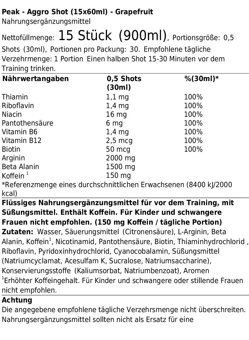 PEAK AGGRO SHOT (15X60ML) GRAPEFRUIT