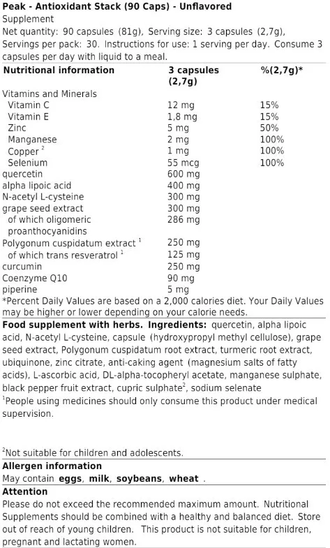 En overdreven mængde af frie radikaler forårsager en række negative bivirkninger, herunder et mere sårbart immunsystem og en dårligere ydeevne. Antioxidant Stack kombinerer koncentrationen af de stærkeste antioxidanter, som kan fås i kosttilskud.