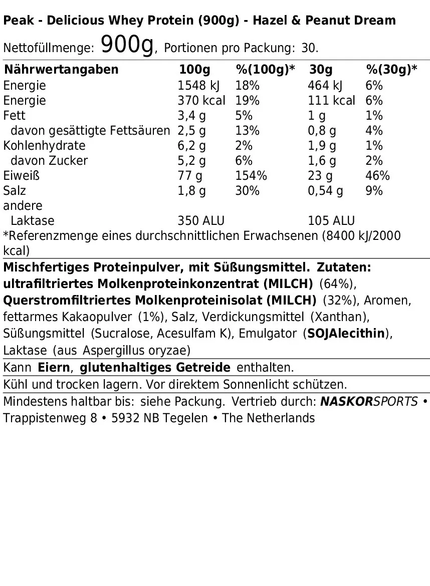 PEAK DELICIOUS WHEY PROTEIN (900G) HAZEL & PEANUT DREAM