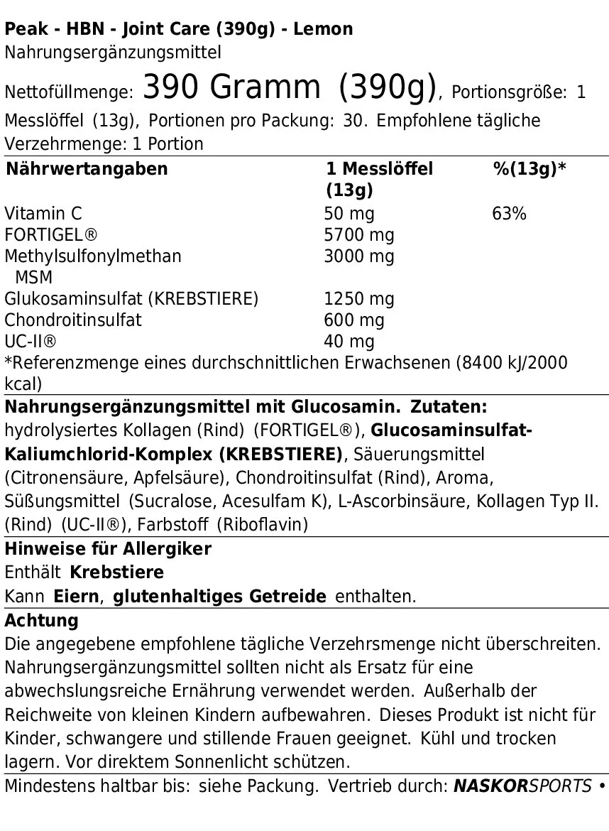 PEAK HBN - JOINT CARE (390G) LEMON