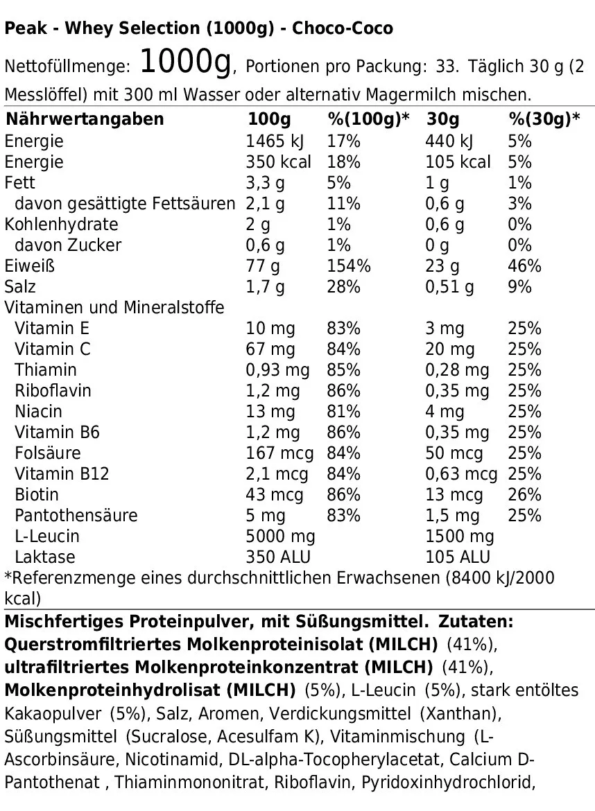 PEAK WHEY SELECTION (1000G) CHOCO-COCO