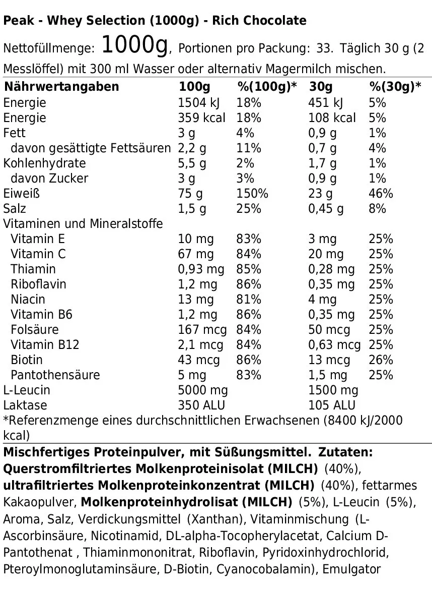 PEAK WHEY SELECTION (1000G) RICH CHOCOLATE