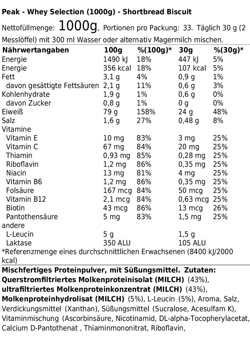 PEAK WHEY SELECTION (1000G) SHORTBREAD BISCUIT