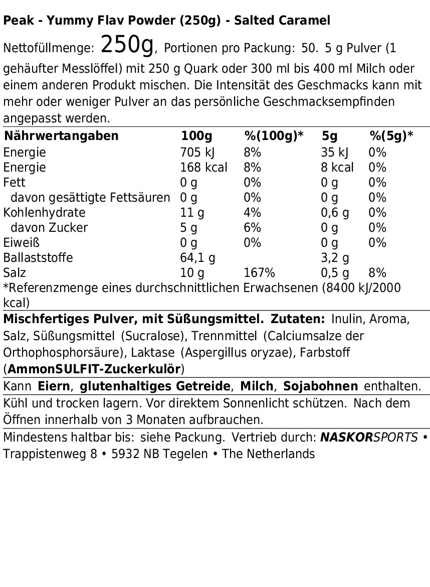 PEAK YUMMY FLAV POWDER (250G) SALTED CARAMEL