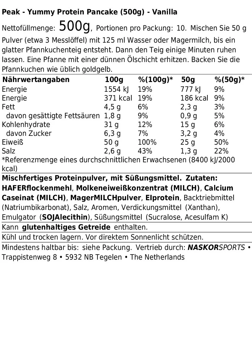 PEAK YUMMY PROTEIN PANCAKE (500G) VANILLA