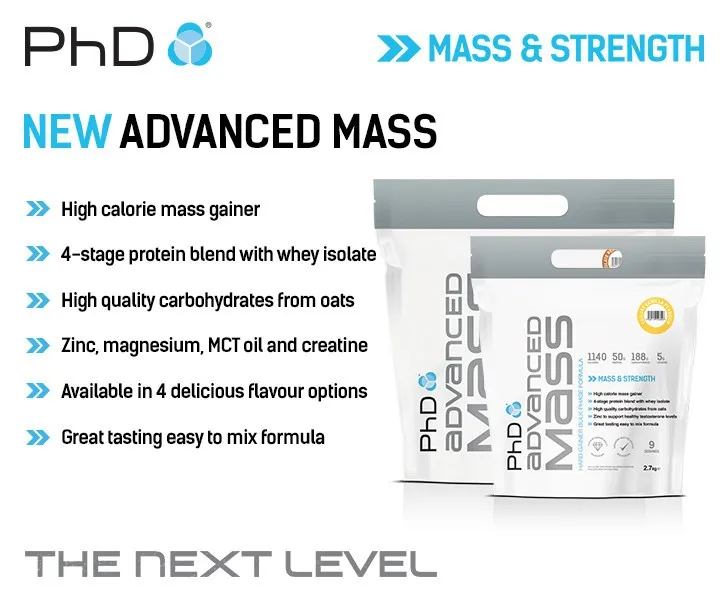 PhD's nye Advanced Mass formular er en gainer der er designet til dig der har svært ved at tage på. Hvis du føler at du kan spise og spise, uden at stige i vægt, så er det sandsynligvis fordi du har en meget høj forbrænding.