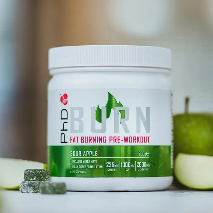 PhD Burn er en ny højtydende pre workout, der giver et skud af energi og sammetid giver en effiktiv fedtforbrænding før træning.
