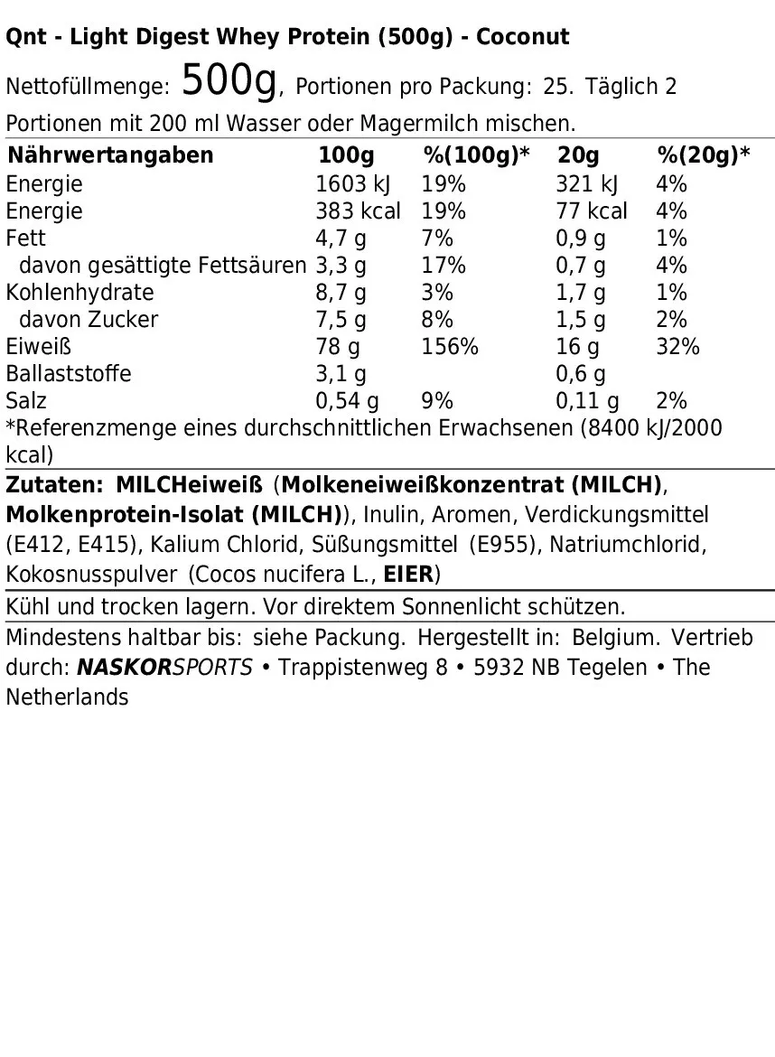 QNT LIGHT DIGEST WHEY PROTEIN (500G) COCONUT