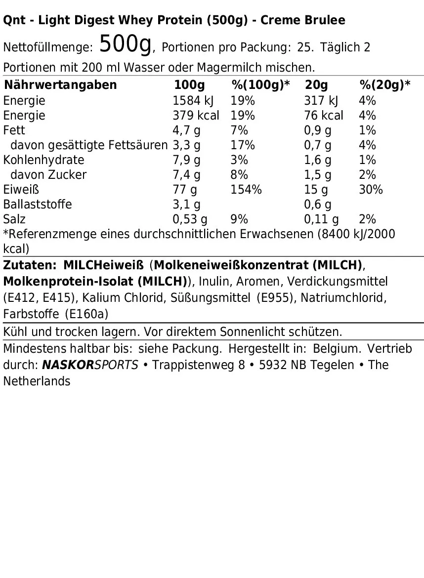 QNT LIGHT DIGEST WHEY PROTEIN (500G) CREME BRULEE