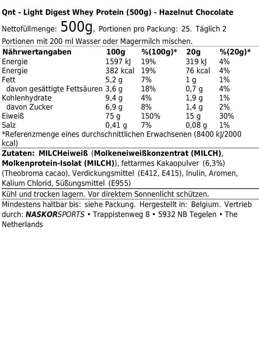 QNT LIGHT DIGEST WHEY PROTEIN (500G) HAZELNUT CHOCOLATE