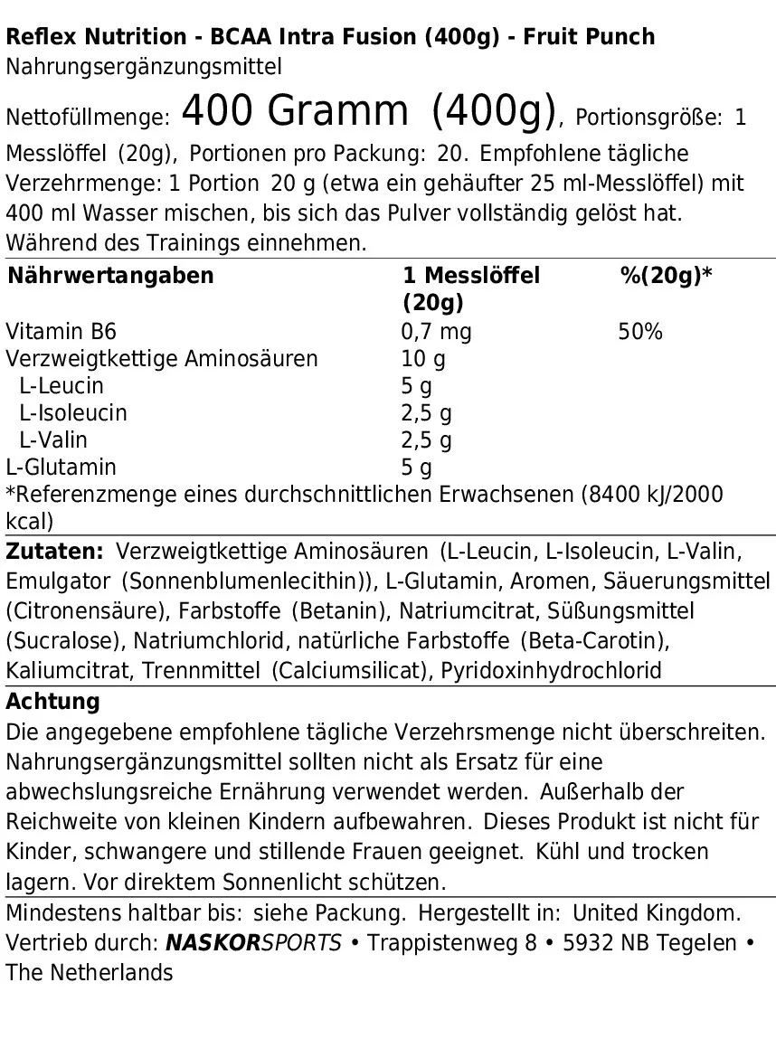 REFLEX NUTRITION BCAA INTRA FUSION (400G) FRUIT PUNCH