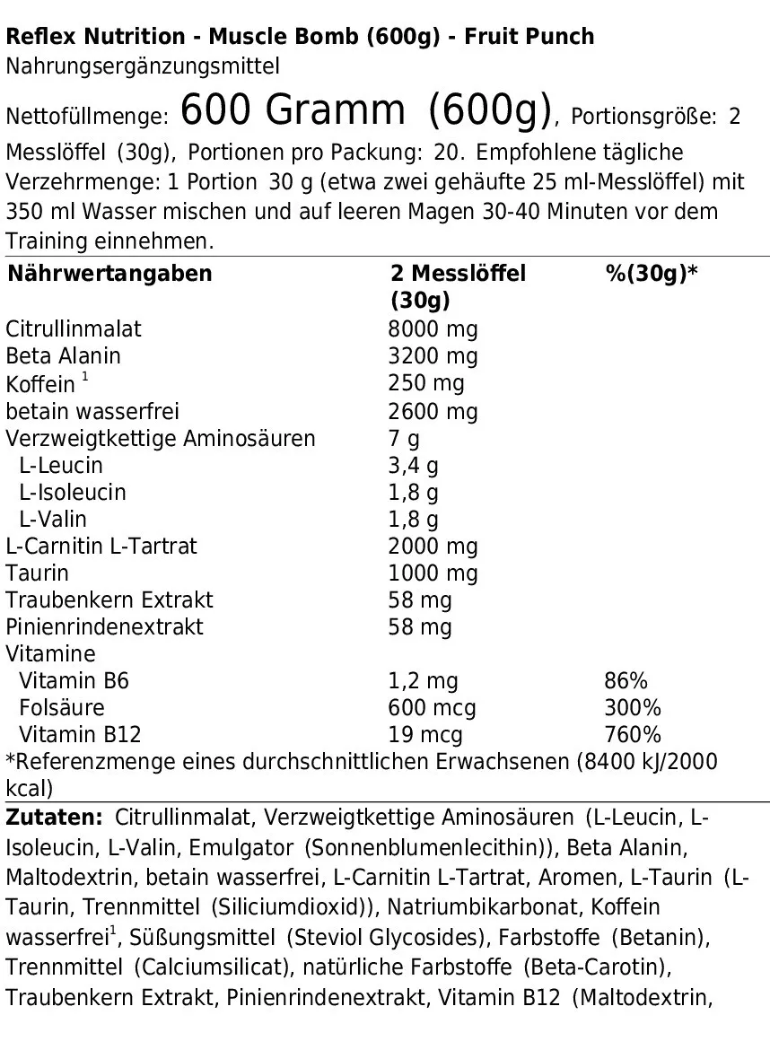 REFLEX NUTRITION MUSCLE BOMB (600G) FRUIT PUNCH