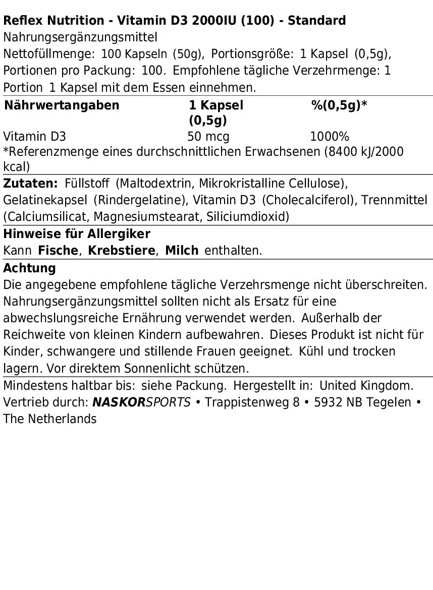 REFLEX NUTRITION VITAMIN D3 2000IU (100)