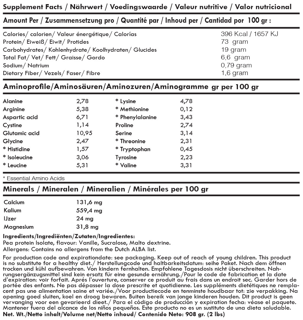 Årteproteinet har ett naturligt högt fiberinnehåll. Det är gjort av den högsta kvaliteten av årteprotein på marknaden och har en komplett aminosyraprofil.