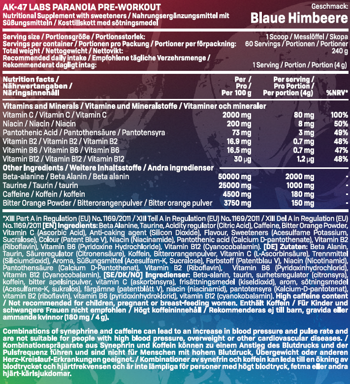 Varje scoop ger dig 2000 mg Beta-alanin som kommer att förbereda ditt nervsystem för tung träning. Vill du kunna lyfta tyngre och bli mer explosiv under träningen? Då ska du ge A₭-47 en chans!