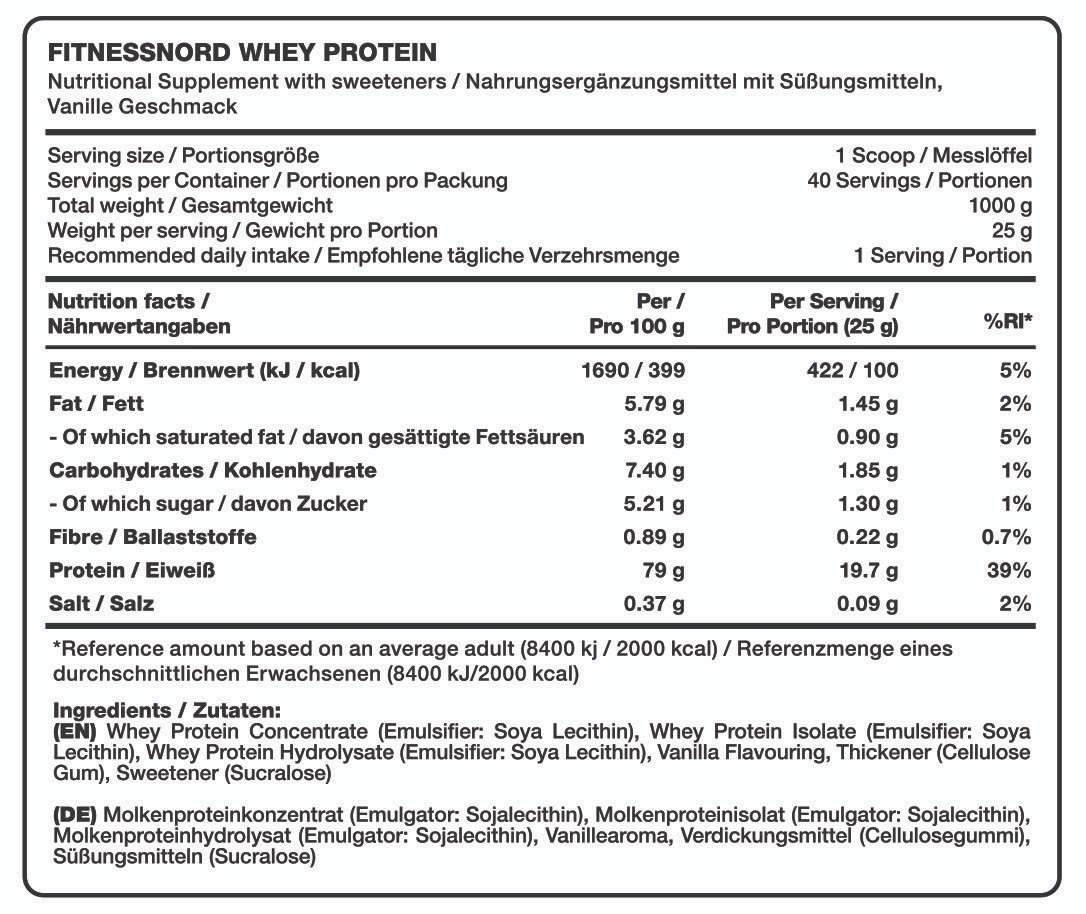 100% Whey från Fitnessnord är en proteinpulver av högsta kvalitet. Produkten består av 100% rent vassleprotein isolat och koncentrat, som kommer att öka din återhämtning och hjälpa dig att bygga fettfri muskelmassa. Med 100% Whey får du en bättre aminosyrprofil jämfört med vanligt vassleprotein koncentrat. Med andra ord får du här en riktigt bra kvalitet till ett osannolikt lågt pris.