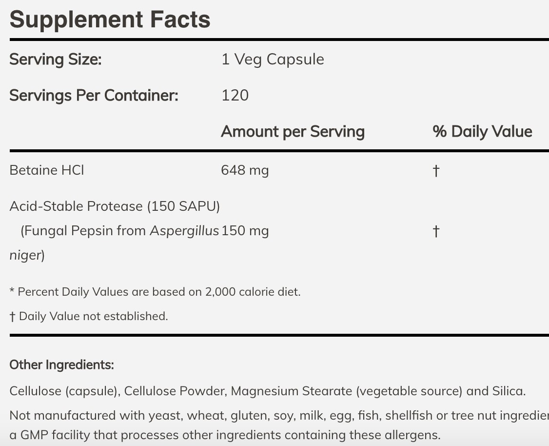 Saltsyra (HCl) produceras normalt i magen, där den bidrar till proteinupptag genom att aktivera enzymet pepsin. Dessutom hjälper saltsyra till att bibehålla en hälsosam balans av tarmflora och stimulerar frisättningen av tarmenzymer.