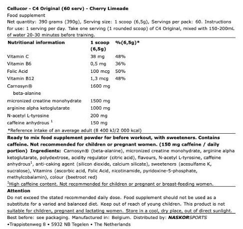 Varje sked innehåller 1,5 gram beta alanin. . C4 innehåller också kreatin monohydrat, som är en av de mest välbeprövade formerna av kreatin.